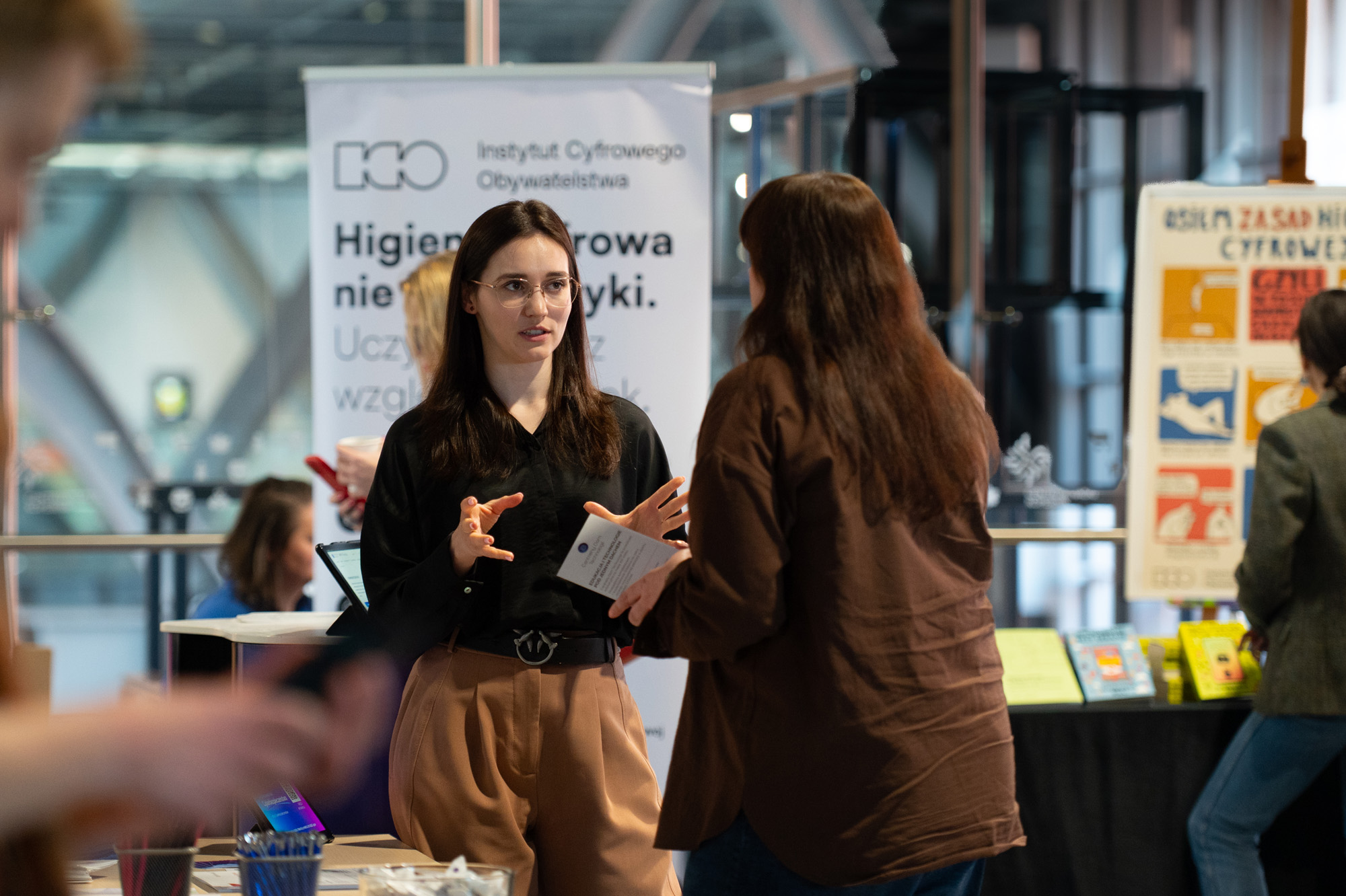 Pierwsze w historii Forum Cyfrowego Obywatelstwa odbyło się w dniach 17-18 marca w Centrum Nauki Kopernik w Warszawie. Wydarzenie zorganizowane przez Fundację „Instytut Cyfrowego Obywatelstwa” zgromadziło ekspertki i ekspertów z obszarów nauki, edukacji, administracji publicznej i biznesu. Przez dwa dni uczestnicy debatowali o wpływie środowiska cyfrowego na społeczeństwo – od higieny cyfrowej i dezinformacji, po zdrowie psychiczne i regulacje prawne. Fundacja PFR pojawiła się na tym wydarzeniu w roli partnera, gdzie prezentowaliśmy naszą ścieżką edukacyjną: Cyberbezpieczeństwo, realizowaną przez Centralny Dom Technologii.